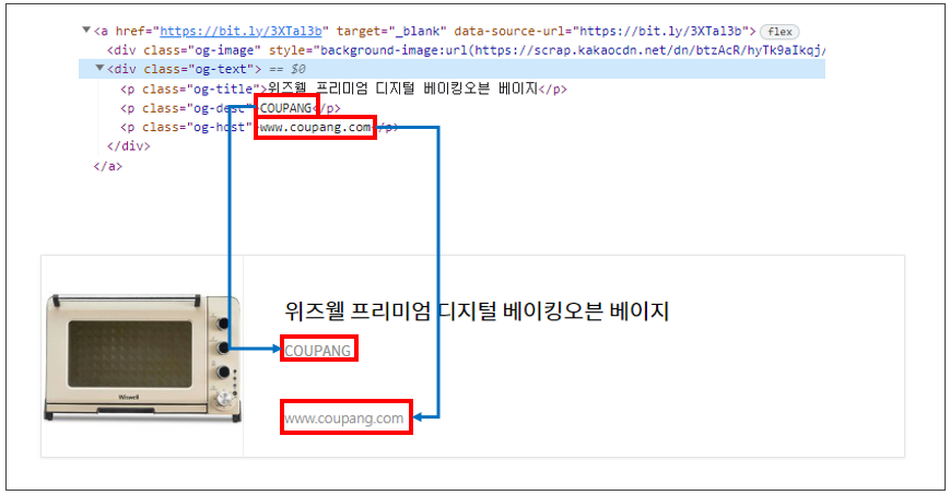 실제로 HTML코드를 들여다보면 쿠팡으로 이동하는 링크라는 정보가 다 남아 있기 때문입니다.
