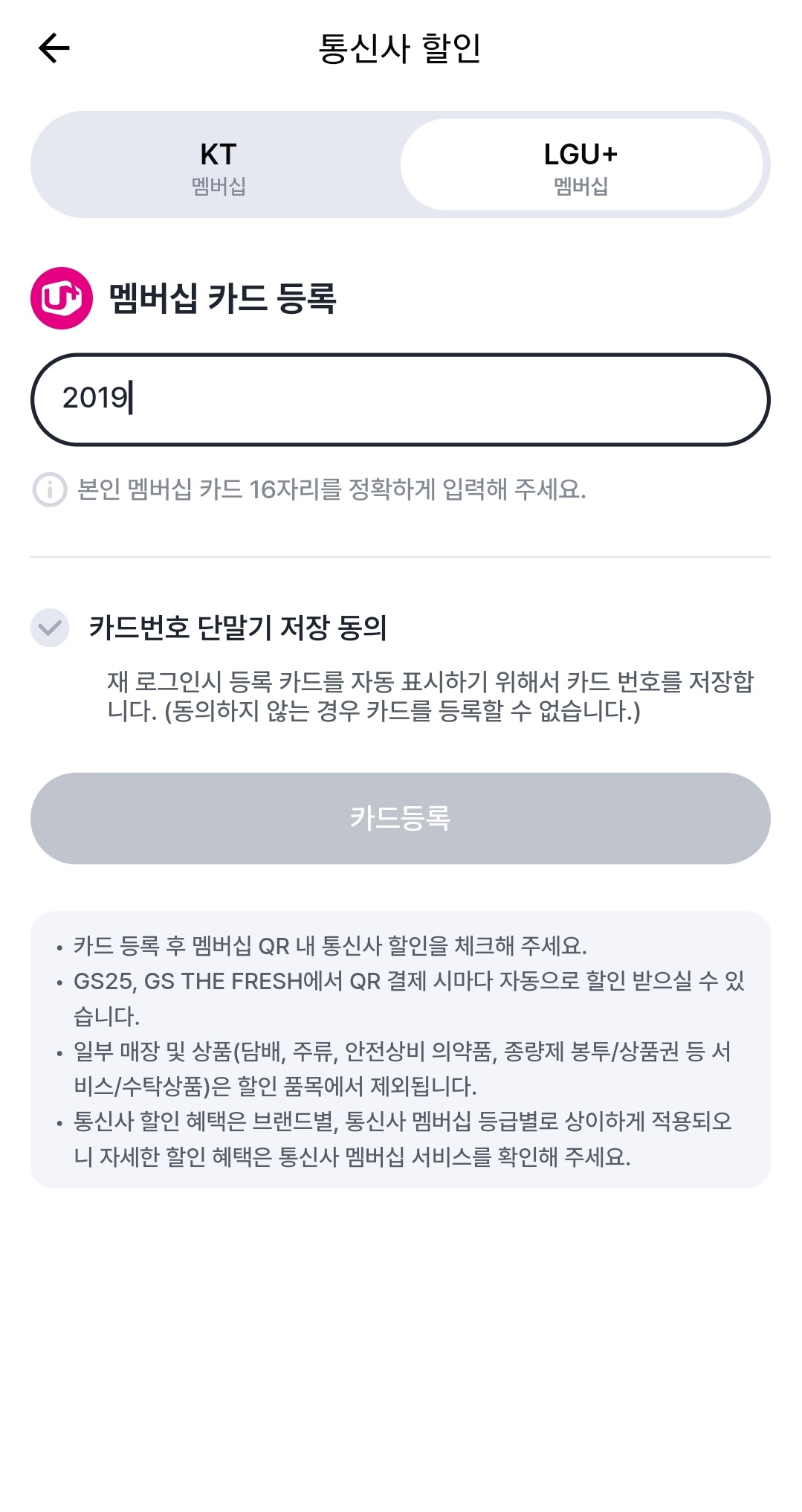 GS Pay로 결제 시, 자동으로 통신사 멤버십 할인이 적용되도록 설정할 수 있고,
