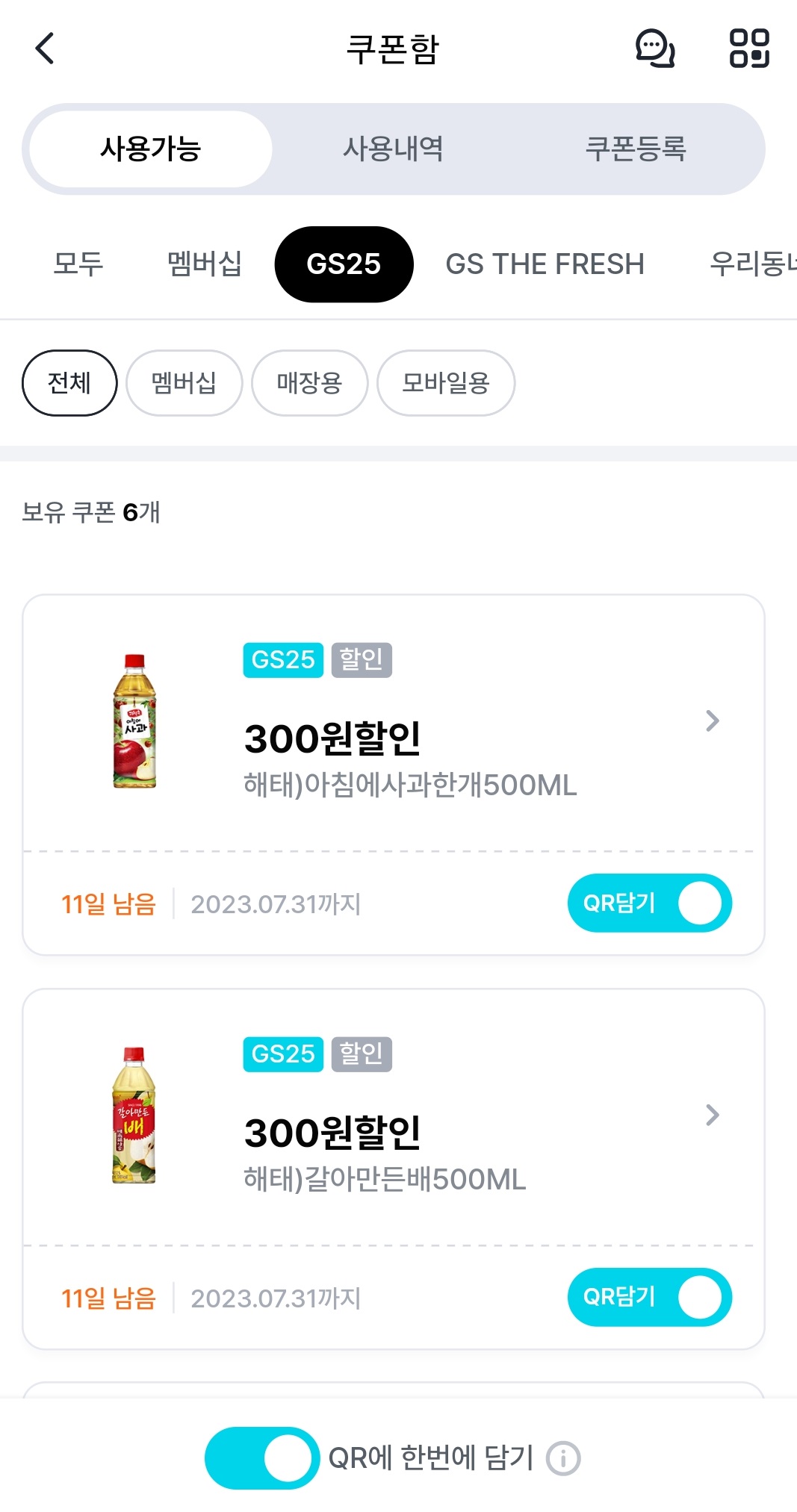 4) QR에 쿠폰이 모두 담겼습니다. 메시지를 확인하시면 됩니다.