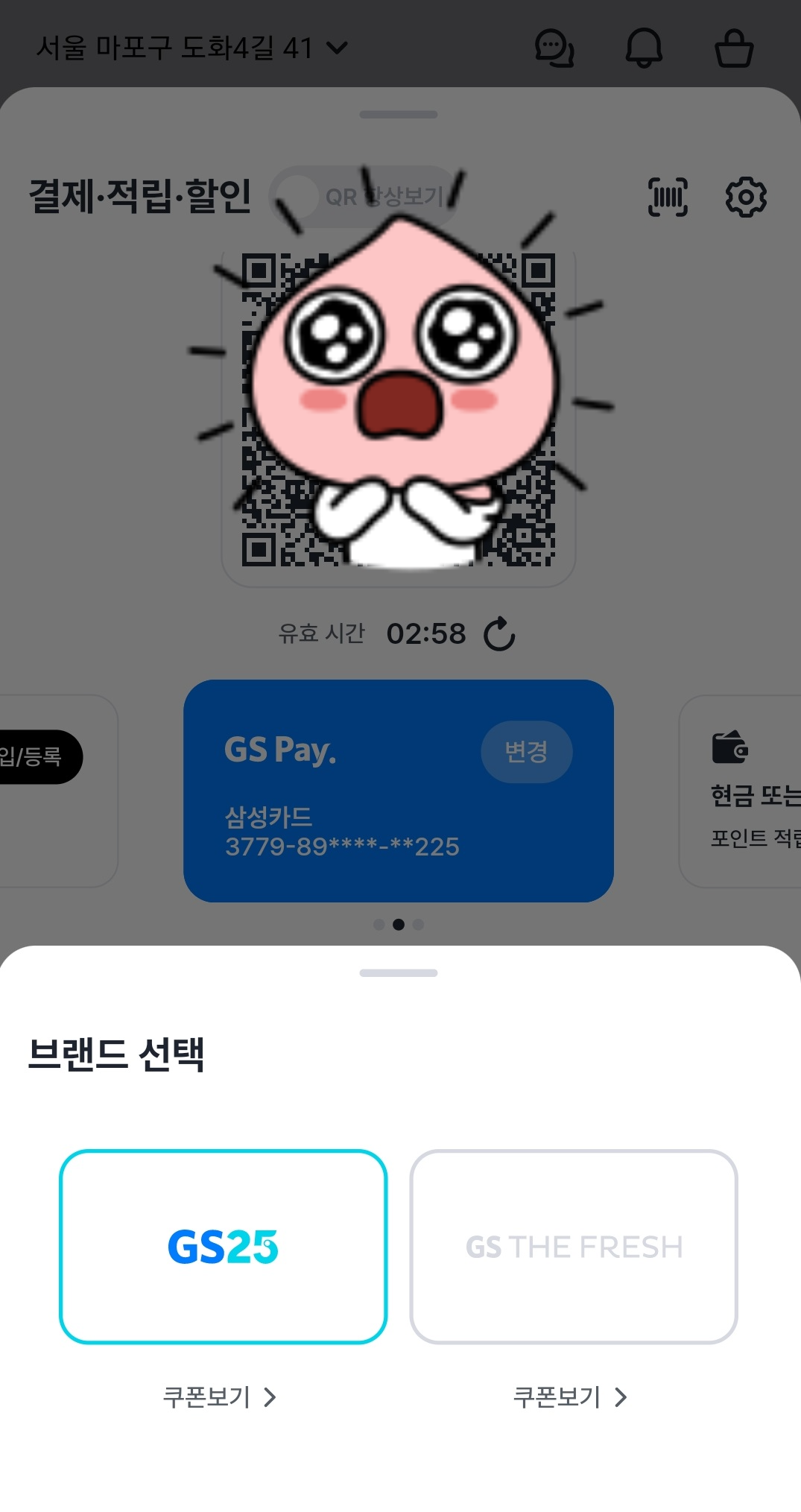 Gs Pay에서 QR코드를 띄워 편의점 직원분을 보여드리고, 편의점 직원분이 QR코드를 스캔하면