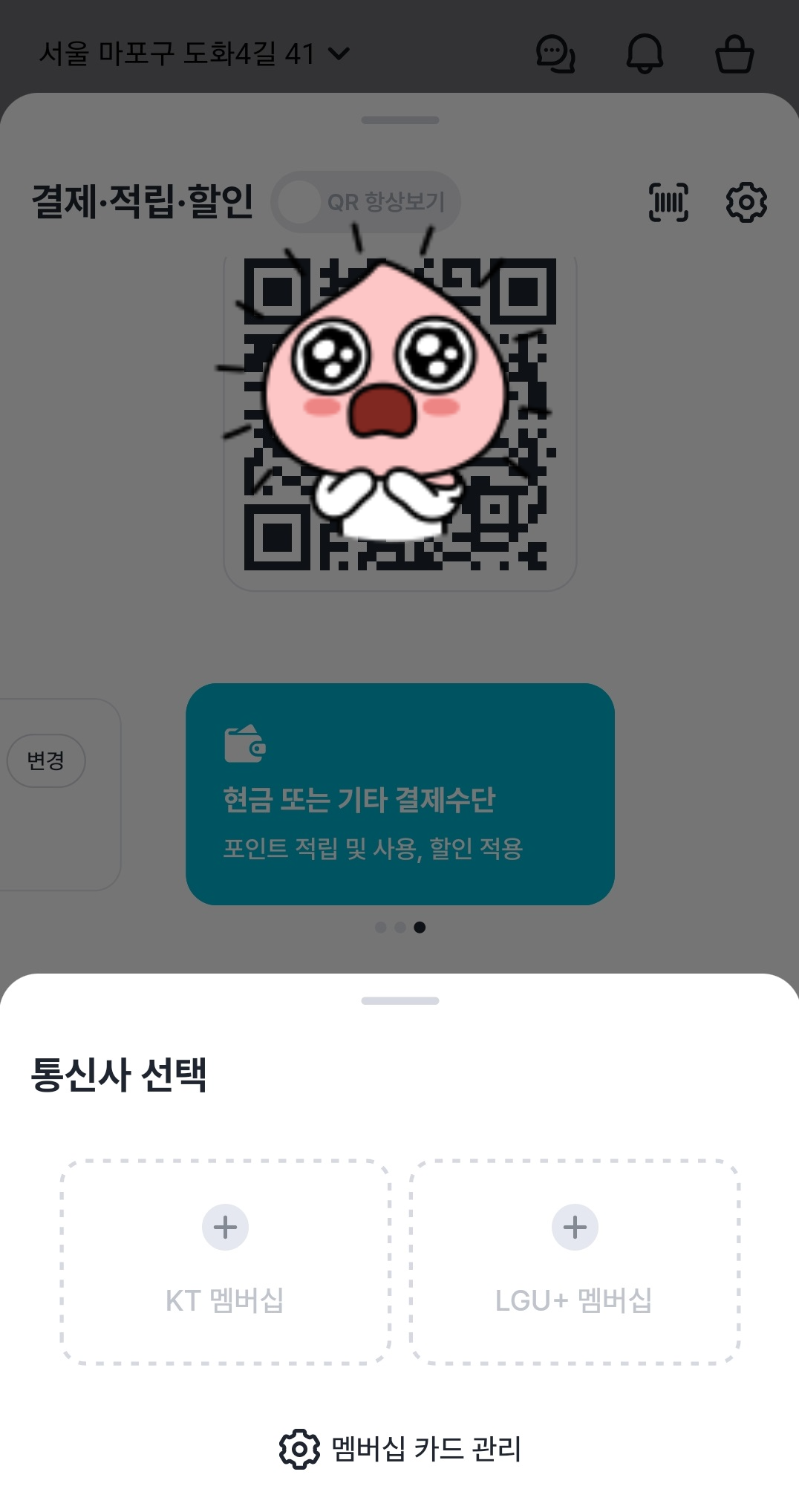 2) 통신사(KT 멤버십 or LGU+ 멤버십)를 선택합니다
